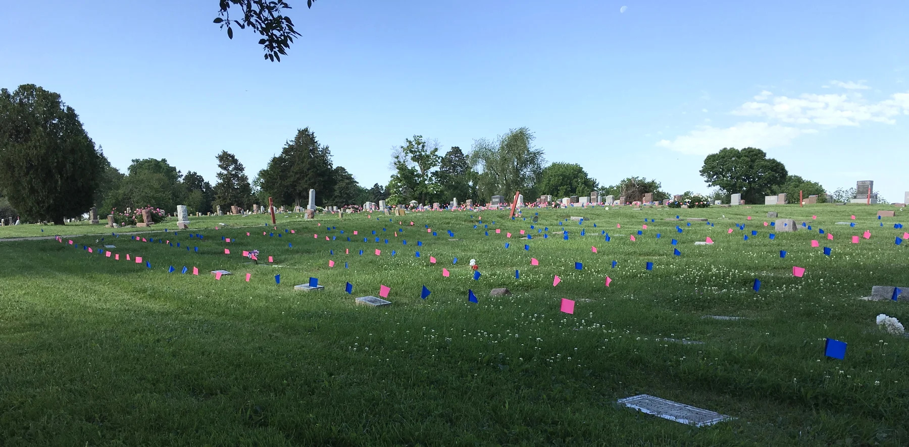 More than 800 infants and children are buried in Sections 73 and 89. The flags show the graves that are unmarked. Friends of Historic Topeka Cemetery want to change that.